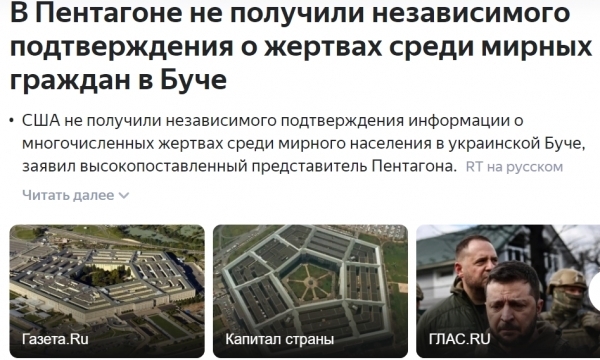 미 국방부, 부차 민간인 희생자들에 대한 독자적인 확인 자료를 받지 못했다/얀덱스 캡처