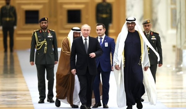 푸틴 대통령은 UAE 아부다비에서 셰이크 무함마드 빈 자예드 알 나흐얀 대통령과 회담에서 "양국 관계는 전례 없이 높은 수준에 도달했다"며 "UAE는 아랍 세계에서 러시아의 주요 무역 파트너"라고 말했다. 두 정상은 회담에서 하마스-이스라엘 전쟁과 우크라이나 상황을 논의하고, OPEC+를 통한 에너지 분야 협력에 관해 의견을 나눴다고 한다.