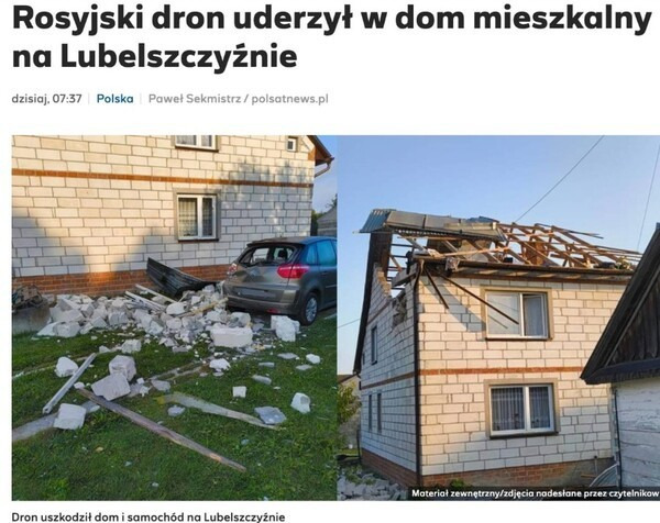 영공을 침범한 러시아 드론에 의해 피해를 본 폴란드 민간인 주택/폴란드 언론 캡처