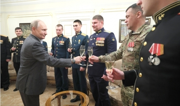 특수 군사작전 유공자들과 함께 새해를 축하하는 푸틴 대통령/사진출처:크렘린.ru