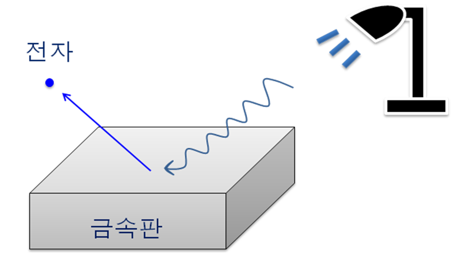 광전효과는 금속판에 빛을 쪼여줄 때 전자가 튀어나오는 현상이다.