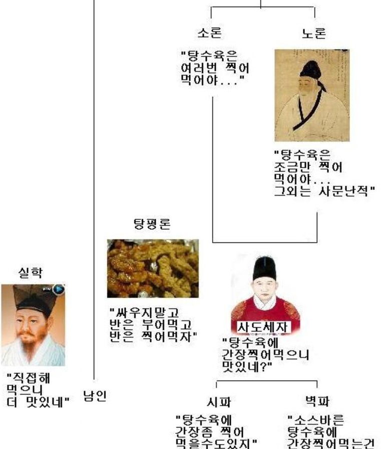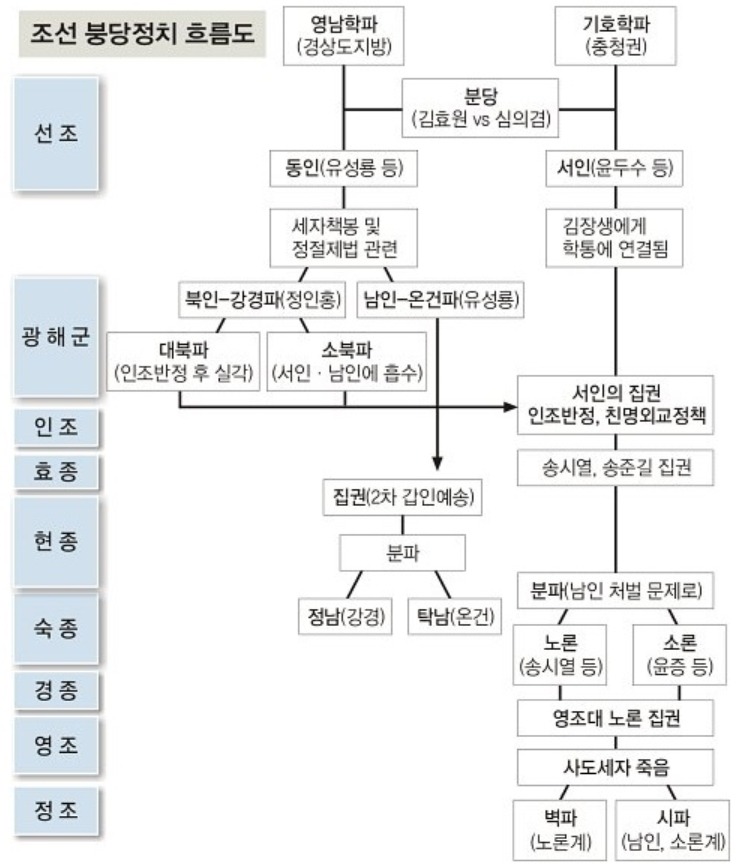 한데, 조선의 당파를 들어다 보노라면 동인?서인(후에 공서?청서)?남인(이후 청남?탁남)?북인(이후 대북?소북)?소론?노론(이후 시파?벽파) 등 그 분파가 마치 칡넝쿨 얽히듯 마구 뒤얽혀 있어, 역사공부는커녕 사극조차 노인네나 보는 고루한 것으로 폄하하기 일쑤였던 나로서는 도대체 뭐가 뭔지 헷갈리기만 하였다.