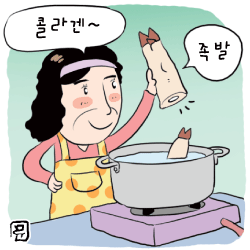 더 좋은 방법은 삶지 않은 돼지 족발(5000원에 4개 정도)을 사서 냄비에 물을 넉넉히 넣고 푹 끓이는데 이때 생강 한 두 쪽을 넣으면 더 좋다.