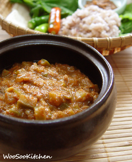 강된장은 찌개보다 농도가 진하고 쌈장보다 물기가 많은데