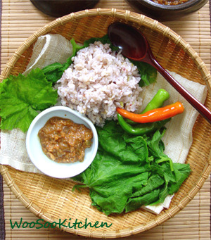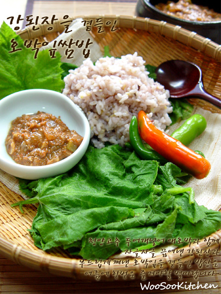 호박잎에 부족한 단백질은 강된장으로 해결이 되니