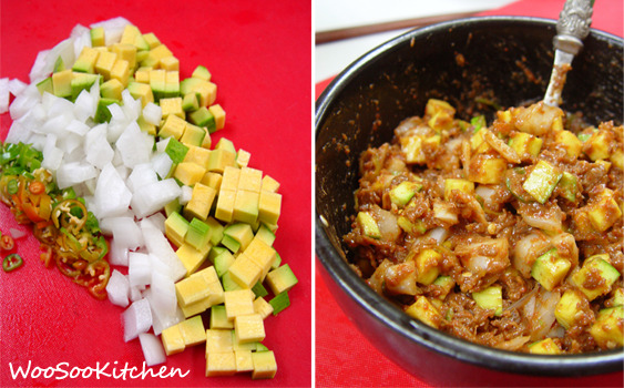 3. 애호박과 양파, 고추를 작게 썰어준비한 후