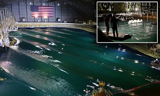 미해군이 신모델의 미니츄어 선박을 테스트 하기 위해 만든 축구장 크기의 선박 운행 연구소
