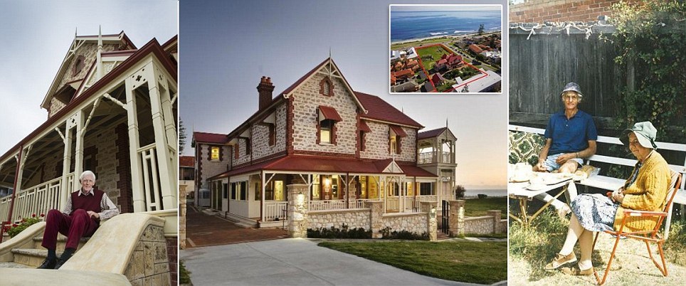 , Ted Smith (left), thinks it was fate that first brought him to Tukurua. He started renting a room at the sprawling beachfront estate (pictured centre) in Cottesloe, Perth in the 1970s and struck up a great friendship with its owner, Dorothea Cass (pictured together, right), and for years he helped her take care of the 5000 sq m property and gardens. When Miss Cass died in 1994 she had never married or had children and she left the heritage-listed estate to her long-time friend Mr Smith. Now he's put it on the market and the iconic property which fronts onto one of Australia's most beautiful beaches (inset) is set to sell for more than $50 million.