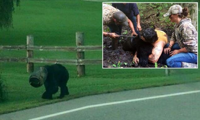 펜실바니아 마을 주변을 버켓을 얼굴에 쓰고 곰이 어슬렁 거리기에 동물 애호 단체 회원들이 한달만에 얼굴에서 버켓을 분리 해 주었다고 함.