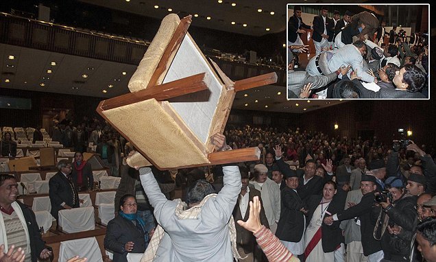 네팔 국회에서 2006년 내란을 종식하고 국회에 합류한 모택동 주의 소수민족 의원이 새로운 헌법이 약속과 다르게 자신들을 소외한다고 느껴 의사당 소파를 집어던져 여당 지도자를 포함하여 6명이 부상 당했다고 함.