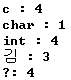 16bit 시스템(운영체제)에서는 2byte로 나올 수도 있을 것 같습니다.