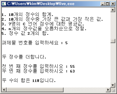 5. 임의의 정수 값 2개를 입력받아 합을 출력하는 프로그램을 작성하세요.