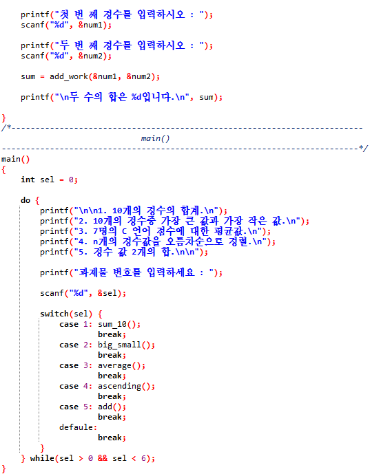 (정수 값 2개를 받아 합을 계산하고 이 값을 포인터로 넘겨주는 함수를 작성하세요.)