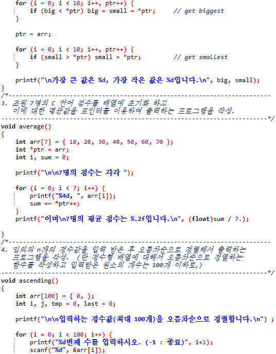 3. 조원 7명의 C 언어 점수를 배열에 초기화 하고 이에 대한 평균값을 포인터를 이용하여 출력하는 프로그램을 작성하세요.