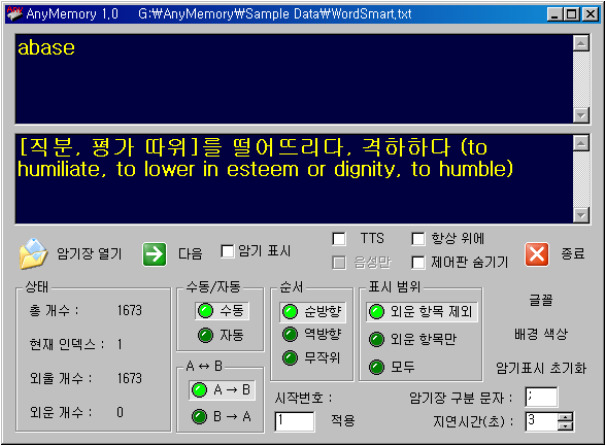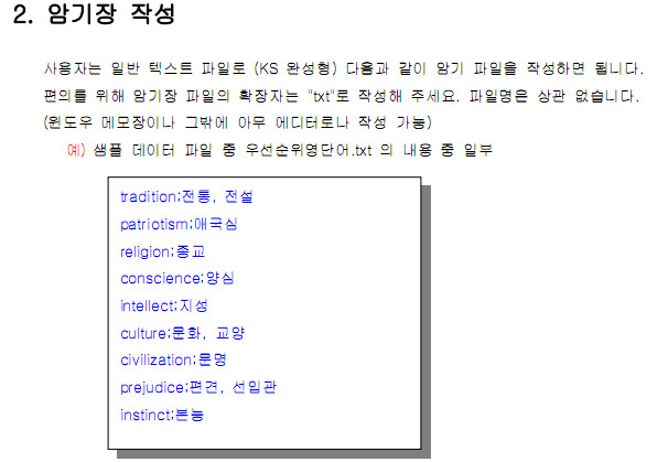 용어암기에도 활용할 수 있습니다. 기본으로 제공하는 단어, 숙어등이 있습니다.