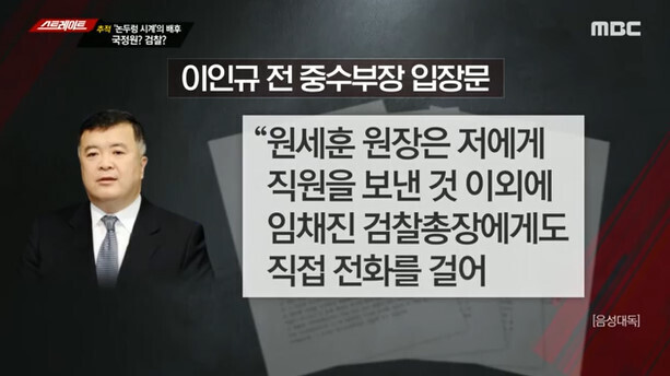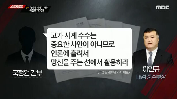 고 노무현 전 대통령 수사 핵심 인물이었던 이인규의 논두렁 시계 배후를 밝히면 여러 사람이 다친다는 인간이 국정원 원세훈을 지목했군요. 수사를 해봐야 증거가 없으니 아직도 국민알기를 우습게 여기는 것입니다.