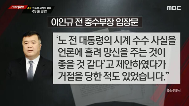 2009년 고 노무현 전 대통령을 수사한 이인규 전 대검찰청 중앙수사부장이 이른바 '논두렁 시계' 보도 경위와 관련해 검찰에 서면 진술서를 냈습니다.