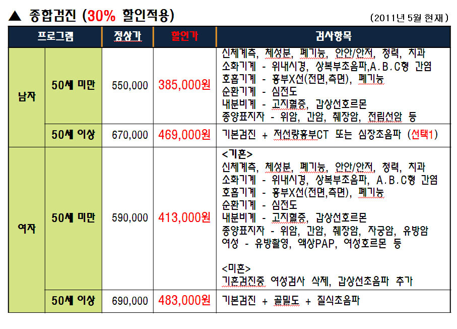 - 외래/입원 선택진료비(특진) 30% 할인적용