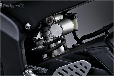 The chassis remains the same proven track performer composed from an aluminum Deltabox frame, four-way adjustable suspension and five-spoke 17-inch aluminum wheels. Everything on this bike is designed, built and fitted with mass centralization in mind, including the new titanium muffler.