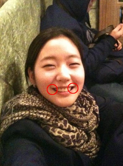 "활짝 웃을때 치아 옆으로 작은 동굴이 보인다!"