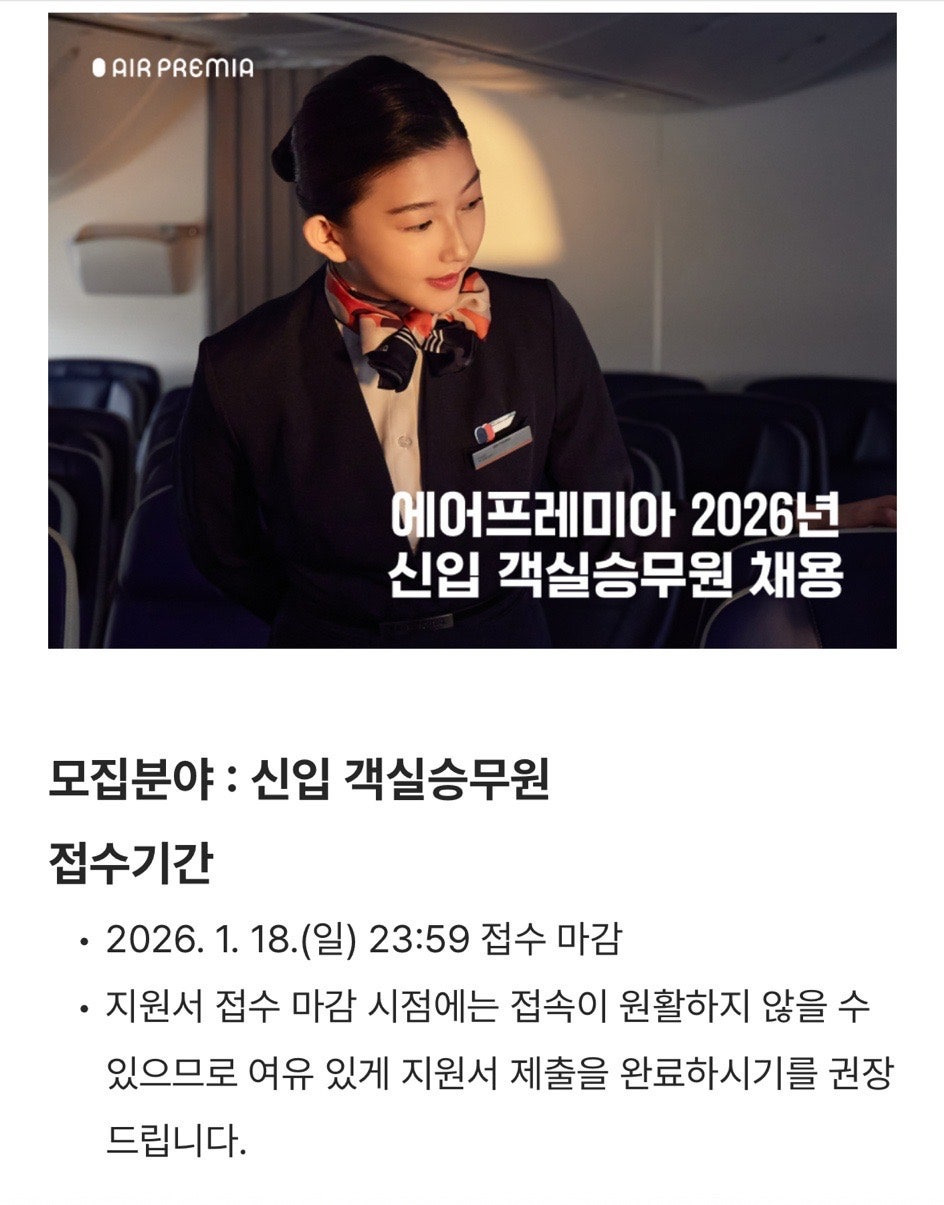 2026년 새해에 에어프레미아 채용공고가 열렸습니다.