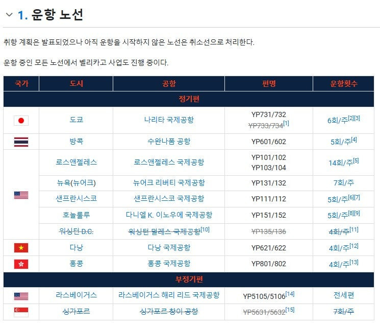 정기편 뿐만 아니라 부정기 전세 항공 노선도 자주 바뀌어가며 운영 중입니다.