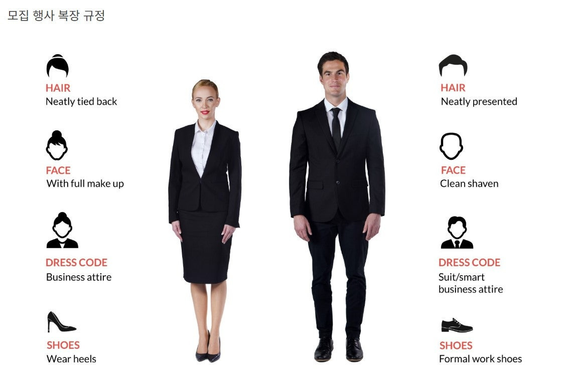 복장은 포멀한 느낌으로 단정하게 갖춰 입으시는것을 추천합니다.