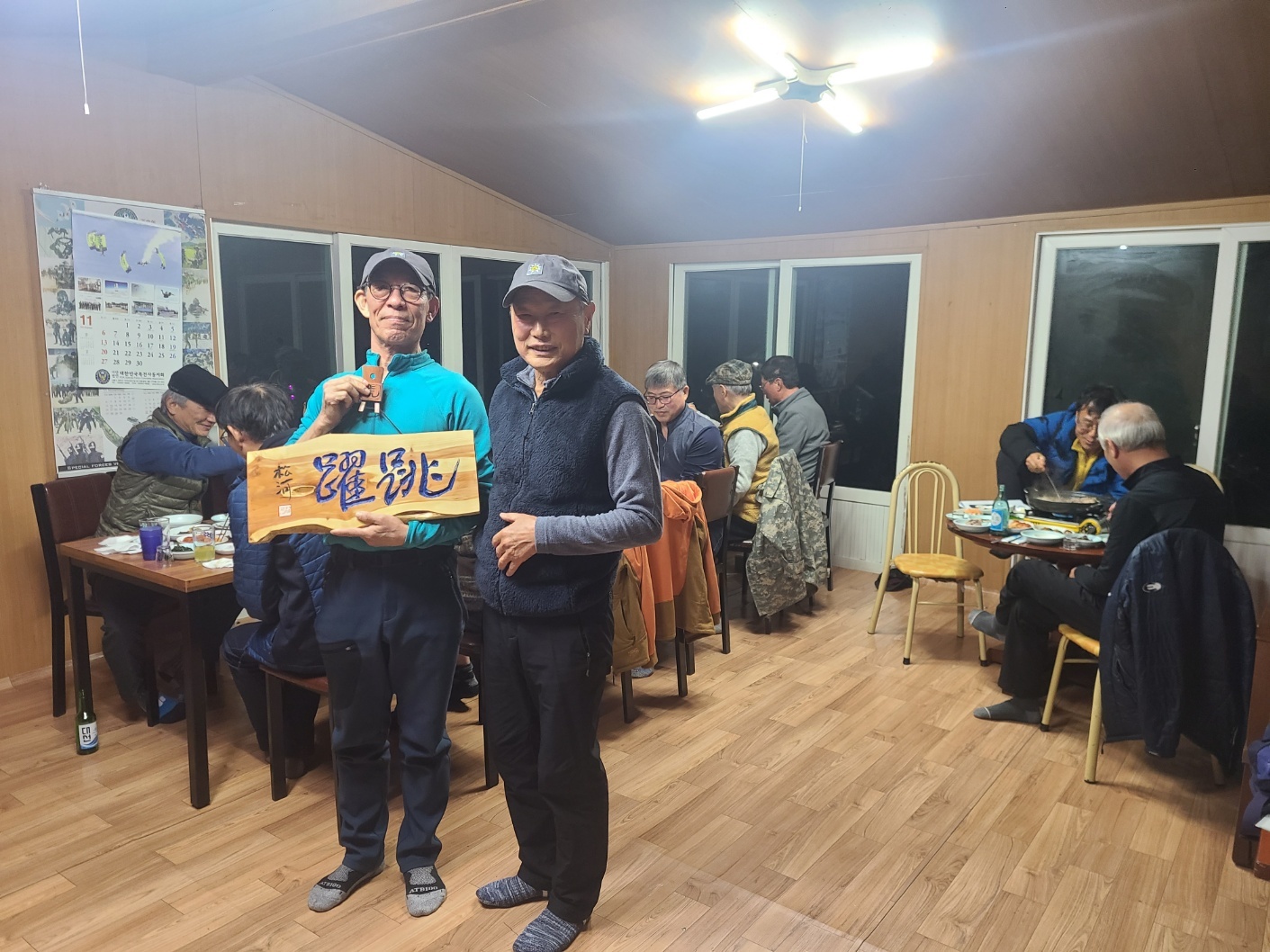 올해 새로 들어오신 배명돌회원님의 소개와 한국산악회손수건을 드리며 환영을 합니다.