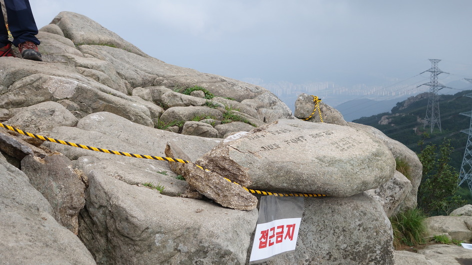 부산의 진산인 금정산의 주봉인 고당봉 표석이 낙뢰로