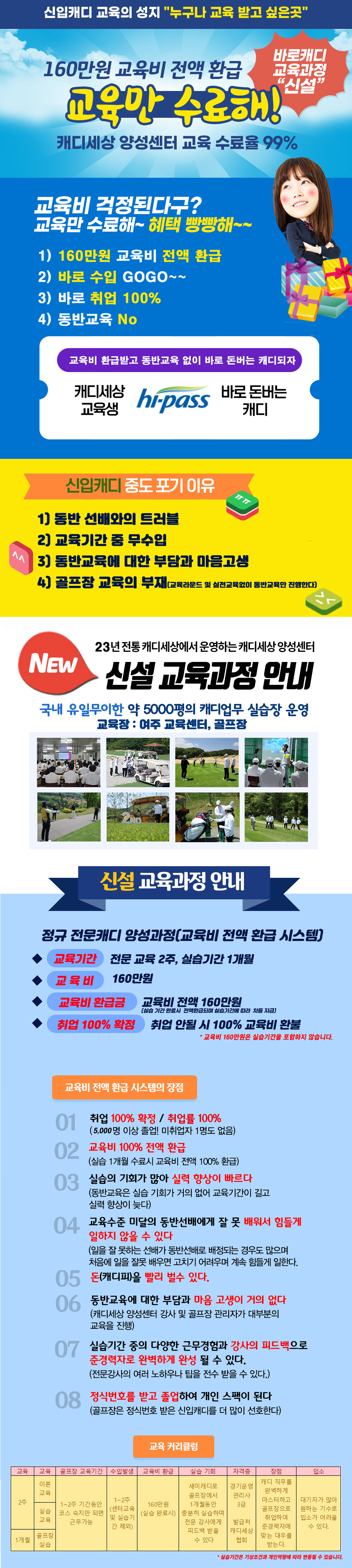 | 교육대상 | 캐디로 성공하고 싶은 남녀 누구나 |