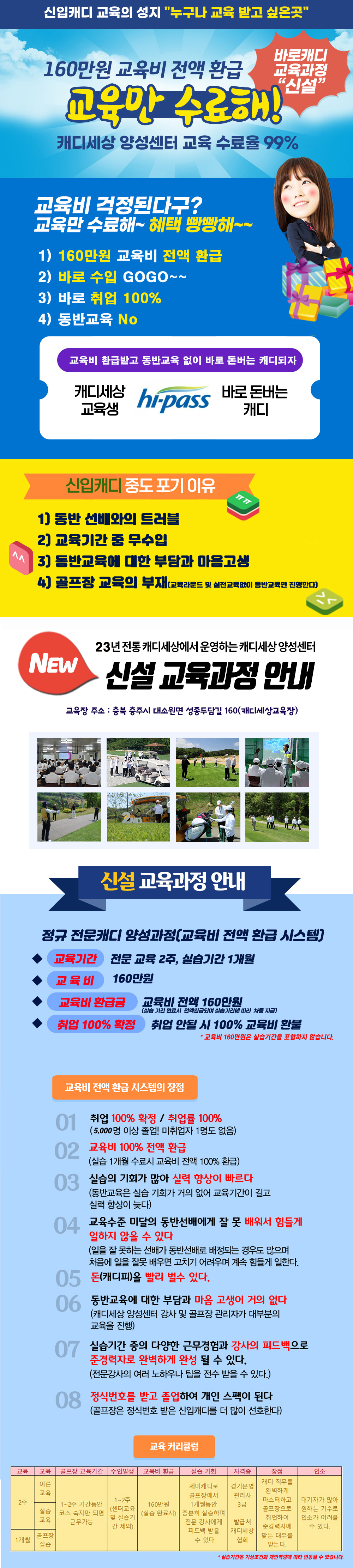 | 교육대상 | 캐디로 성공하고 싶은 남녀 누구나 |