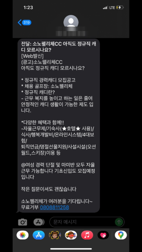 소노펠리체cc 캐디분한테 연락이 왔습니다