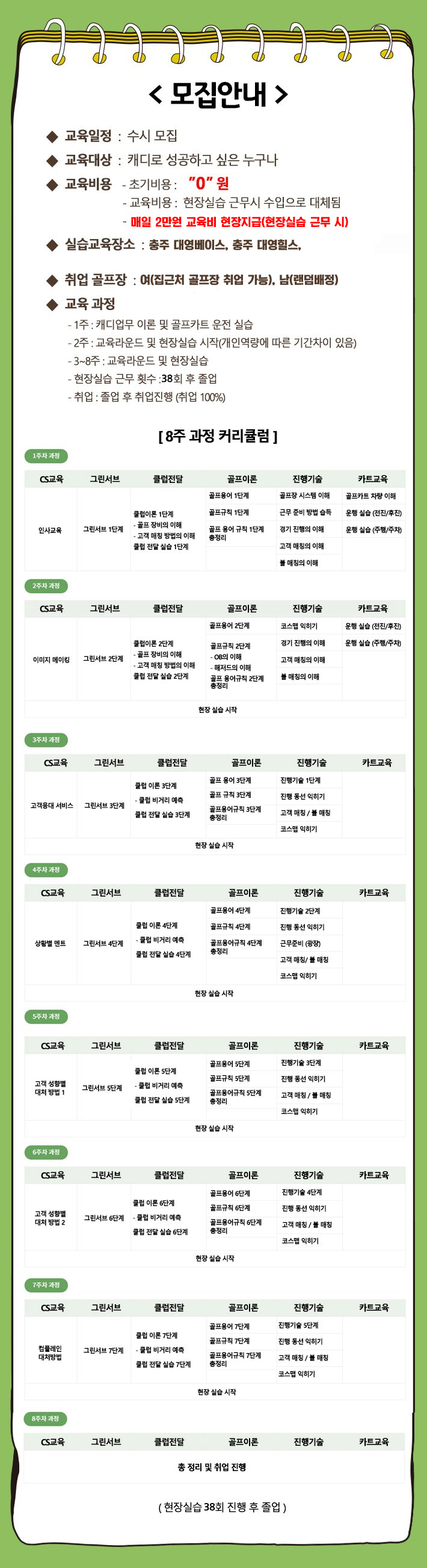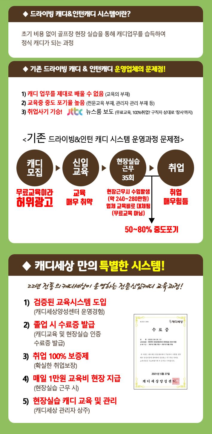 [무료 교육과정] 교육부터 취업까지 확실하게 책임지는 캐디세상양성센터에서 골프캐디 시작해 보세요!! 집근처 골프장 취업가능 작성자캐디세상매니저3|작성시간25.03.24|조회수38 목록 댓글 0 글자크기 작게가 글자크기 크게가 골프장이나 3부 업체의 중도 포기자가 많은 이유는 체계적인 교육이 없고 취업의 불확실 때문입니다. 캐디는 전문 기술직으로 일정 교육이 반드시 필요한 직업입니다.22년의 노하우가 있는 "캐디세상"체계적인 전문교육과 취업이 100% 확실한 캐디세상에서 시작하세요!! 다음검색 현재 게시글 추가 기능 열기 북마크 공유하기 신고 센터로 신고 댓글 댓글 0 댓글쓰기 답글쓰기 댓글 리스트