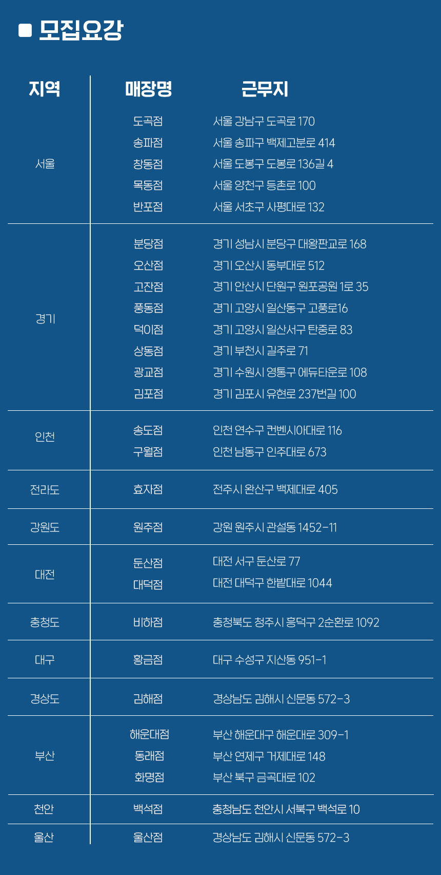근무지 : 전국 지역별 상이함