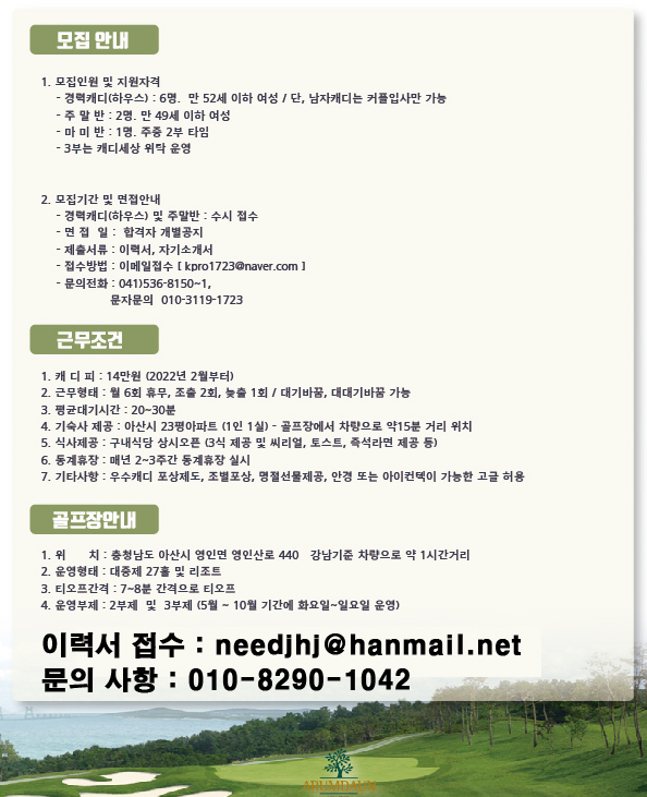 아름다운cc 하우스로 취업하여 코스숙지 후