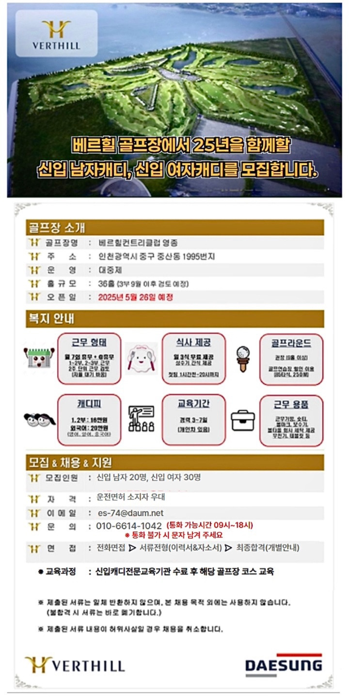 [1탄][신입모집]★[베르힐CC영종] 인천영종도 소재 남자&여자 신입캐디 모집!!! 25년 5월 신규오픈 골프장