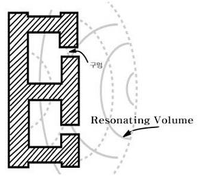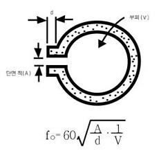 따라서 특정한 주파수에 대한 위상변이(Phase Cancellation)가 발생하여 조정실 안에서의 그러한 특정 정상파가 소멸하게 되는 원리이다. 어떤 공간에서 있어서는 안될 이러한 특정한 정상파를 미리 알고 있다면 그림1과 같이 공식을 통하여 공명기를 설계할 수 있다.