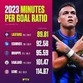 도탁스 (DOTAX) [FcInterNews]25세 이하 공격수 중 득점순위 3위 및 2023년 분당 득점 1위를 기록 중인 라우타로 마르티네스