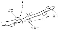 ㅇ 안 눈 위에서 자르면 그 눈에서 나온 새 가지는 안쪽으로 자라 통풍, 수광을 나쁘게 하고, 바깥쪽 위를 자르면 가지가 밖으로 자라 나무가 건실하게 자라게 된다.