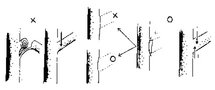 ㅇ 평평한 면을 깍을 때는 자루를 길게 잡고 깍고, 측면을 깍을 때는 날과 한쪽 손을 깍을 면에 가볍게 대고 다른 한손으로 가볍게 움직이며 깍아 손질한다.