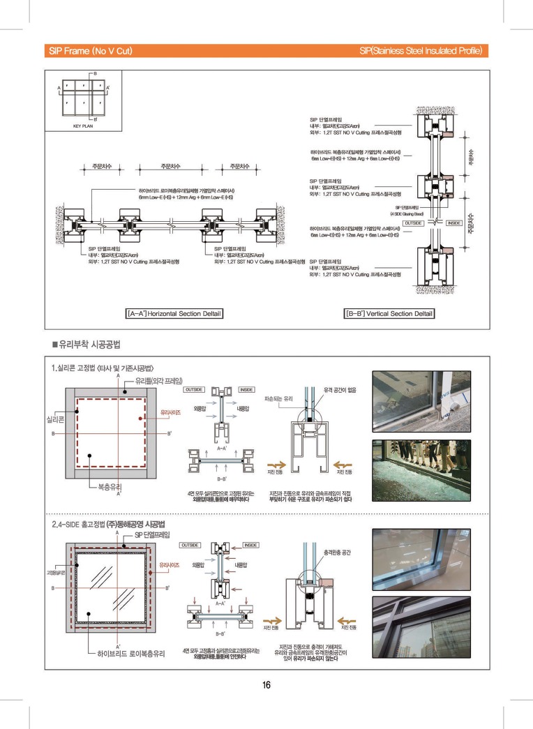 에너지절약설계기준- 포사이드 노브이컷 공법 스텐리스 단열창호[내진 내화 단열]