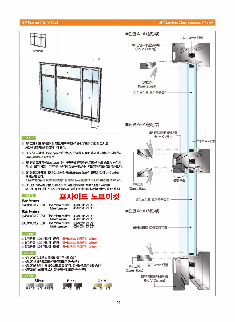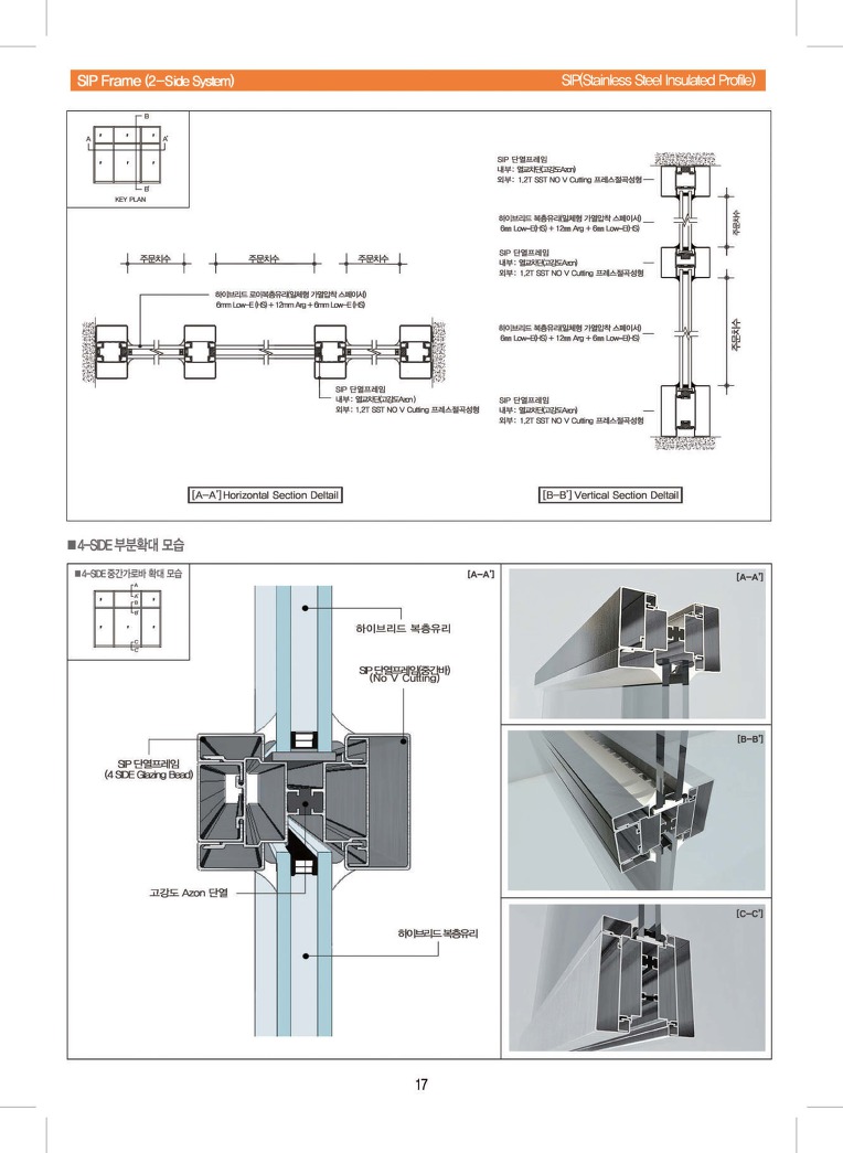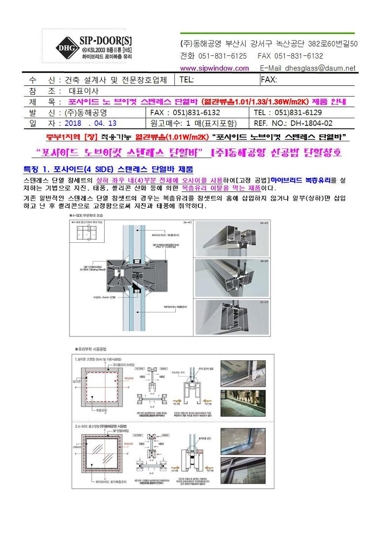 단열스테인리스 포사이드 공법 노브이컷 창호(SSD,ASSD) 설계적용자료 (열관류율 1.238W/m2K)