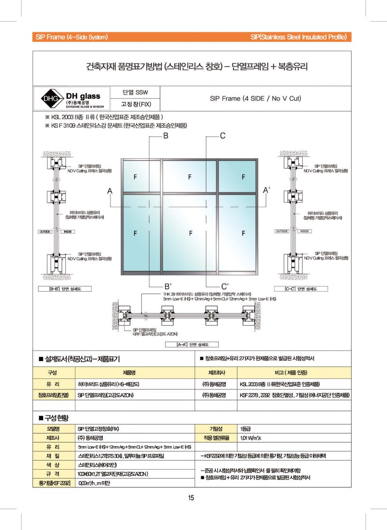 - [SIP 열관류율 1.5 이하(스텐레스 단열프레임+하이브리드 복층유리)완제품]