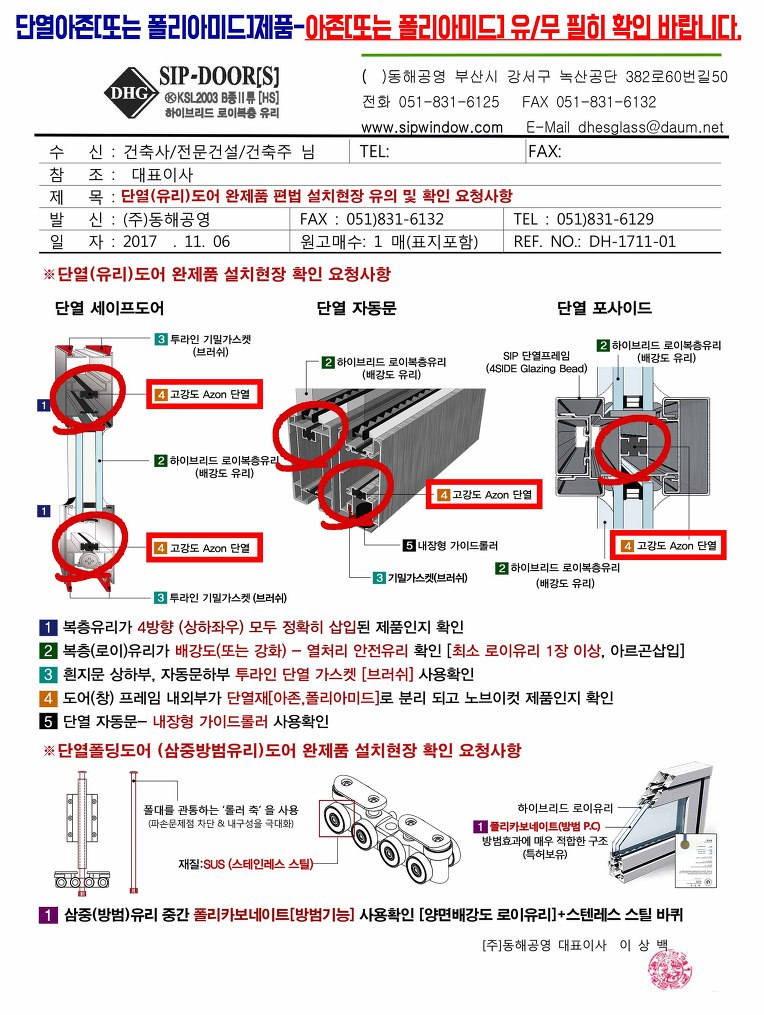 뿐만 아니라 흔들림 이 잦은 출입문 유리도어로써 최적합 성능을 지닌 제품임을 알려 SIP 단열유라도어 시장의