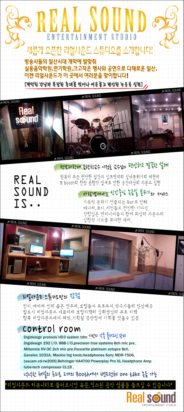 [스크랩] 리얼사운드 엔터테인먼트 스튜디오를 소개합니다~!! 작성자김희성|작성시간11.07.22|조회수114 목록 댓글 0 글자크기 작게가 글자크기 크게가 다음검색 스크랩 원문 : 리얼리스트의 리얼사운드~! 현재 게시글 추가 기능 열기 북마크 공유하기 신고 센터로 신고 댓글 댓글 0 댓글쓰기 답글쓰기 댓글 리스트
