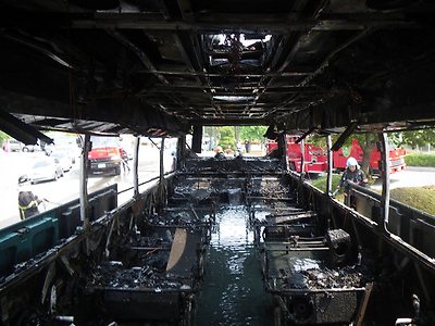 10일 충남 연기 홍익대학교 세종캠퍼스에서 통학버스 폭발사고가 발생, 전소된 통학버스.