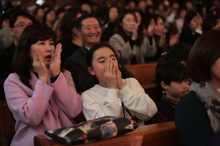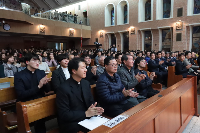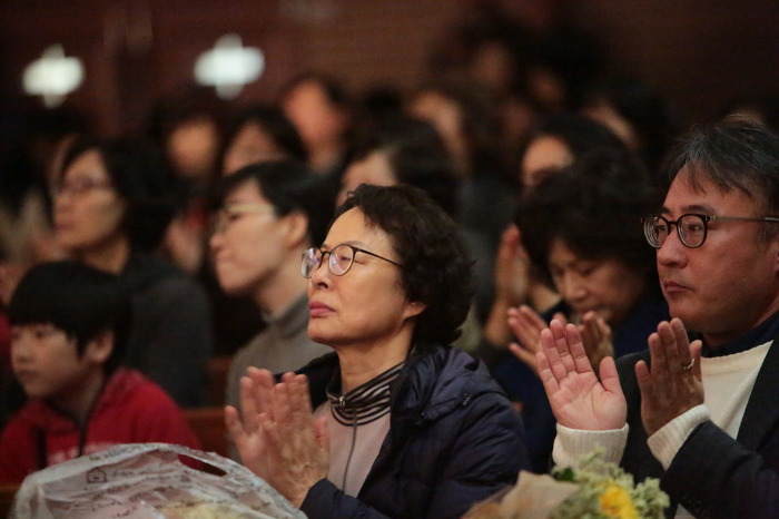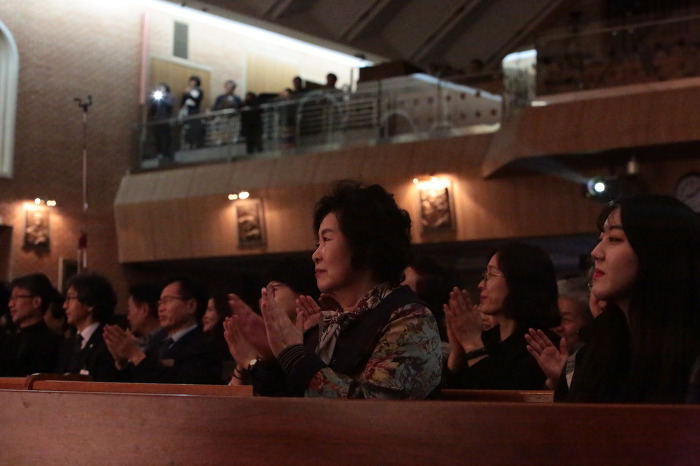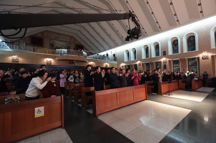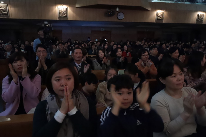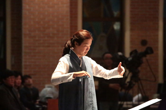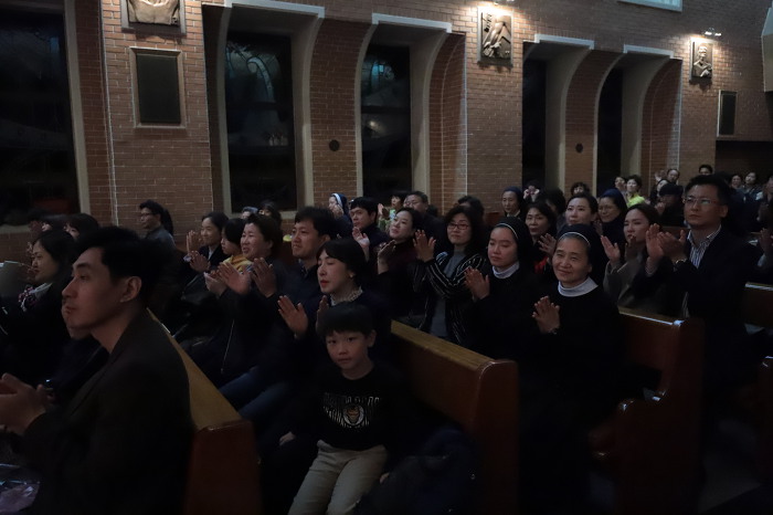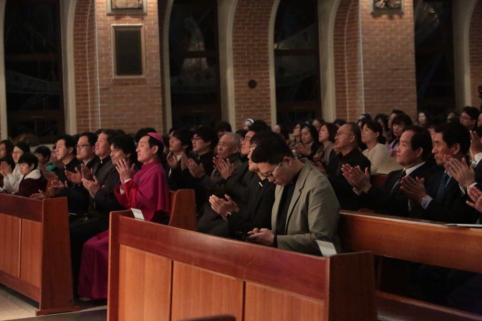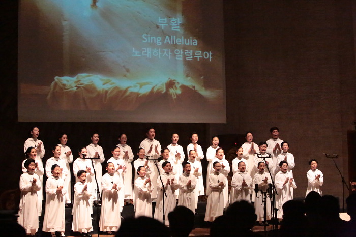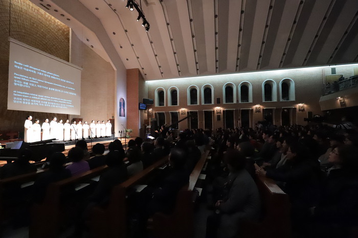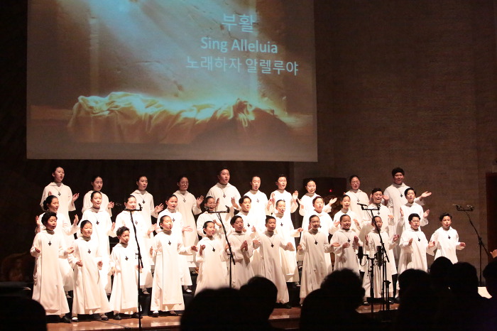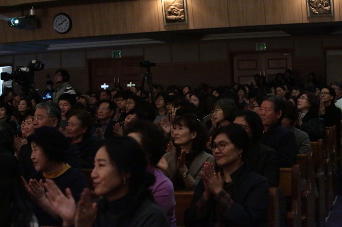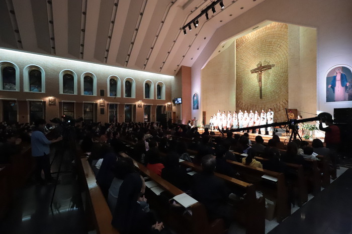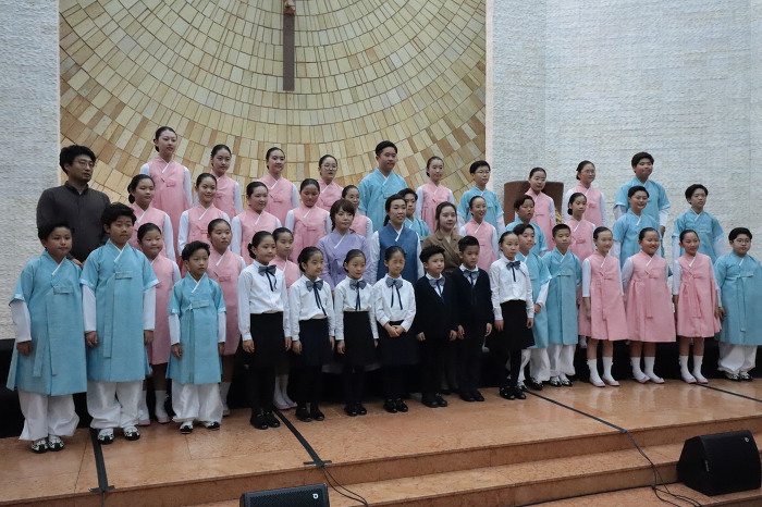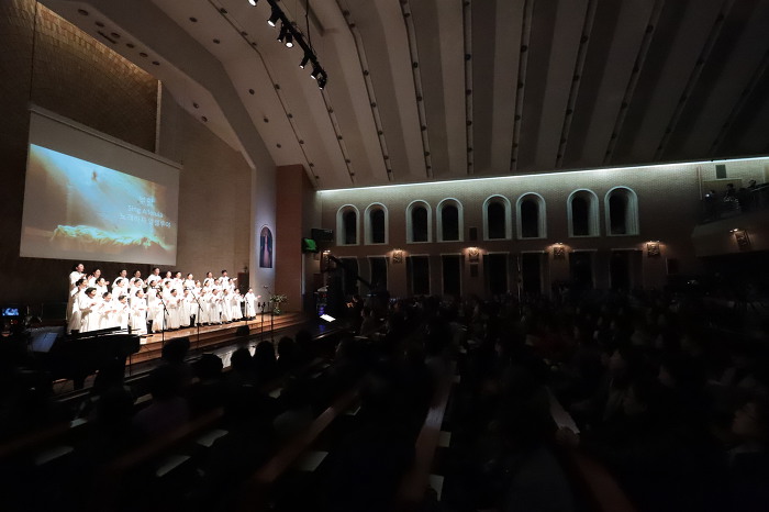 800여 청중의 환호 박수와 함께 앙코르를 받은 합창단은 ‘Libera Sanctus’(리베라 상뚜스) 연주로 관객에게 화답했다. 합창단은 이날 수도복 형태의 전례복과 한복인 단복을 갖춰 입고 공연했다. 전례 복장으로 연주할 때면, 단원들이 한마음으로 하느님을 찬미하고 기도드리는 수도자 같았다. 또 연한 장미색과 푸른색의 한복을 입고 노래할 때는, 하느님을 사랑하고 교회를 알리며 믿음을 굳건히 했던 순교 선열들을 떠올리게 했다.