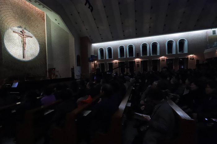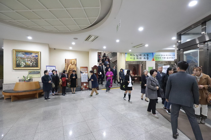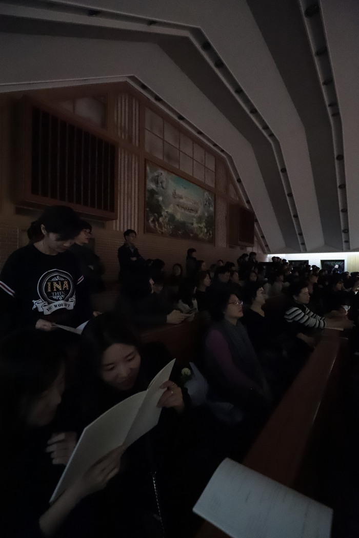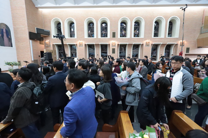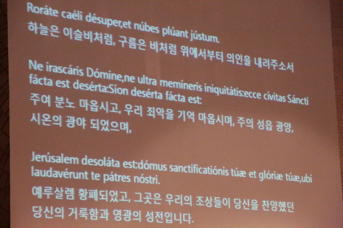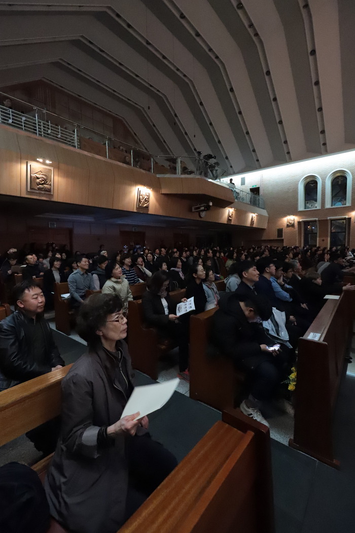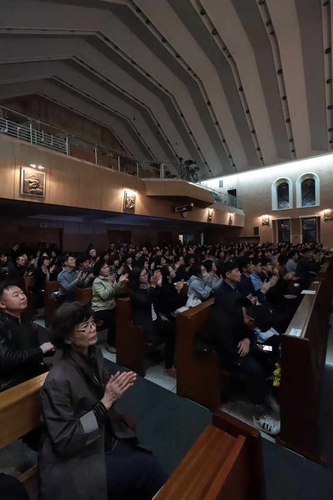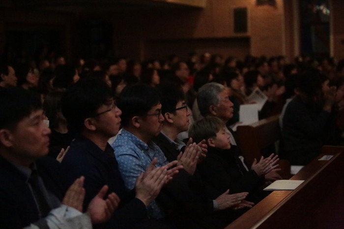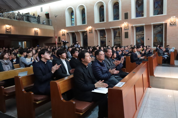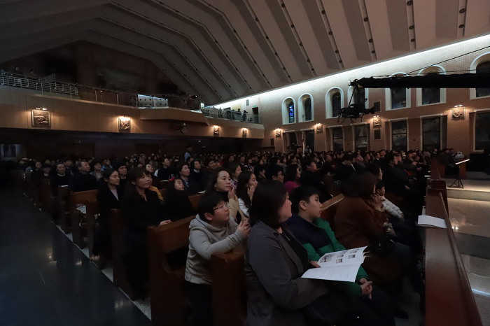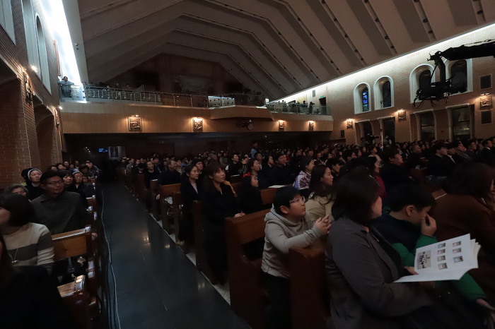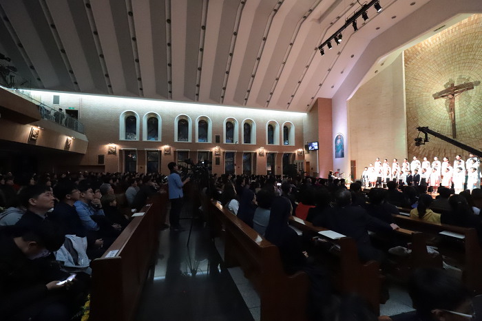 800여 청중의 환호 박수와 함께 앙코르를 받은 합창단은 ‘Libera Sanctus’(리베라 상뚜스) 연주로 관객에게 화답했다. 합창단은 이날 수도복 형태의 전례복과 한복인 단복을 갖춰 입고 공연했다. 전례 복장으로 연주할 때면, 단원들이 한마음으로 하느님을 찬미하고 기도드리는 수도자 같았다. 또 연한 장미색과 푸른색의 한복을 입고 노래할 때는, 하느님을 사랑하고 교회를 알리며 믿음을 굳건히 했던 순교 선열들을 떠올리게 했다.