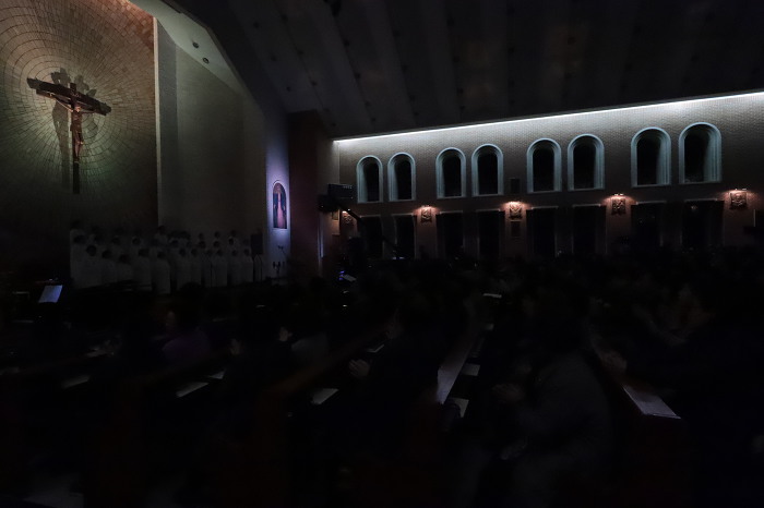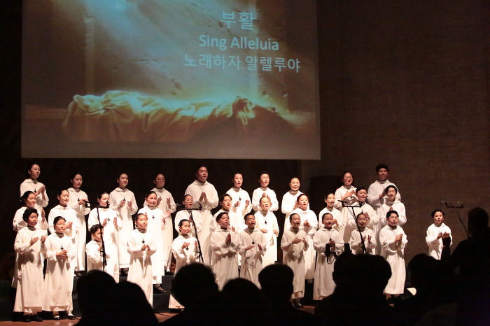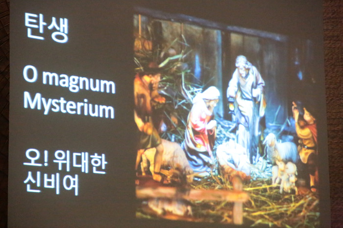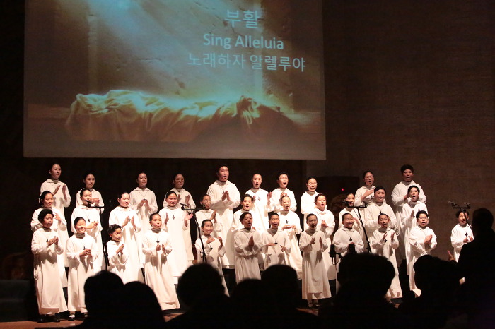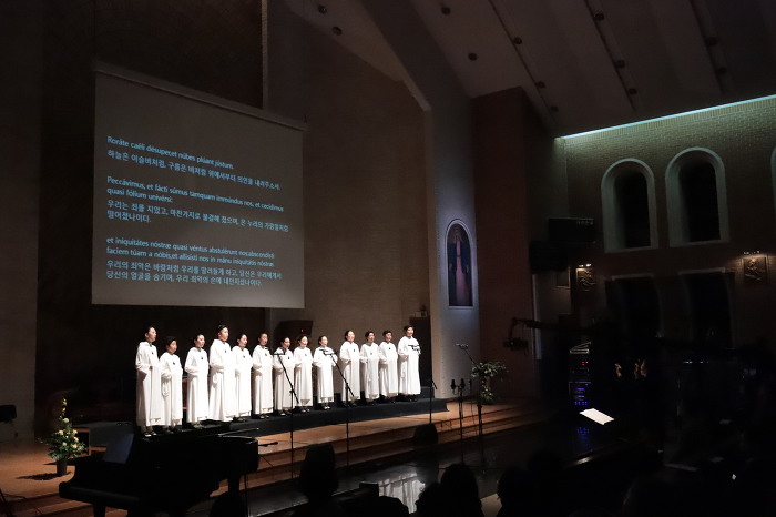 합창단은 음악회 제1부에서 성경 특히 시편을 내용으로 하는 그레고리오 성가 ‘Kyrie’(자비송), ‘Gloria’(대영광송), ‘Sanctus’(거룩하시도다), Agnus Dei(하느님의 어린양)를 아 카펠라(a cappella)로 연주했다. 제2부에서는 기다림(‘Rorate Caeli’, 하늘은 이슬비처럼) – 탄생(‘O Magnum mysterium’, 오 위대한 신비여) – 죽음(‘Pie Jesu’, 자비로운 예수여) – 부활(‘African Alleluia’, 노래하자 알렐루야)을 노래했다.