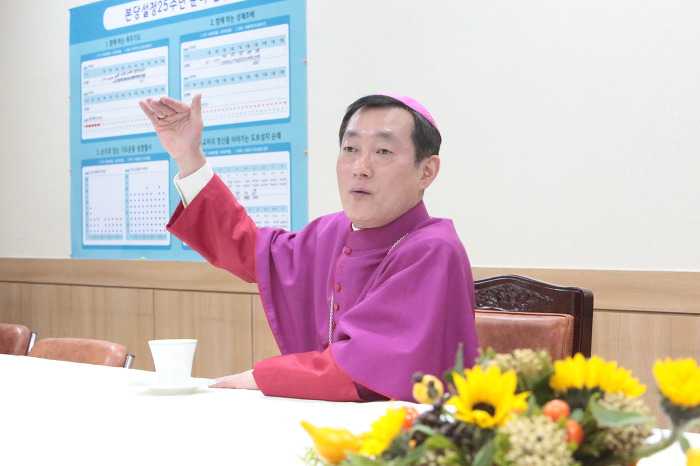 9일 분당성마르코성당에서 열린 창단연주회에 참석한 교구장대리 문희종 주교는 “천상의 아름다운 소리로 장식한 합창단의 공식적인 창단을 축하한다”며 “단원들이 노래 실력을 더 많이 쌓아 성장할 수 있도록 교우 여러분의 응원과 격려를 부탁드린다”고 당부했다.